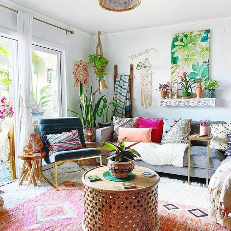 The lounge room can shift in surfaces – from light, straightforward and breezy material to heavier (even velvet like) materials. Boho idea essence hoists the ornamental creation in tallness (textural nearness nearly to the roof) and offers warm, comfortable and cover like feel for your lounge room space.